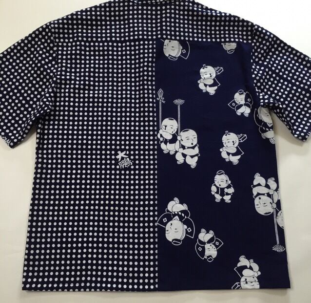 中古浴衣をリメイクしました。2種類の浴衣地を使い、遊び心が感じられるデザインです。