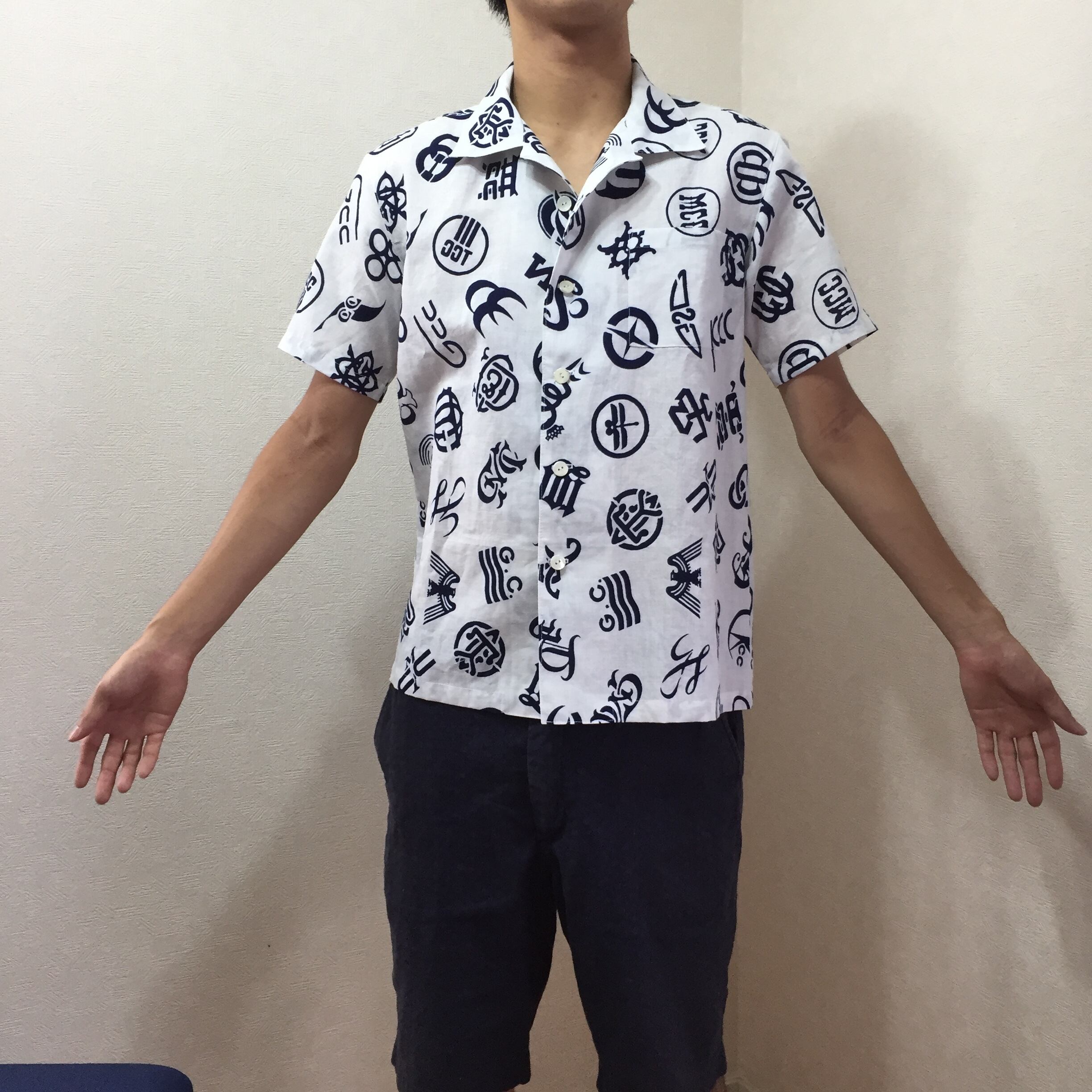 未使用と思われる古い浴衣をリメイクしました。色々な企業のロゴマークが描かれています。直径1ミリぐらいの小さな茶ジミと、染めムラが僅かにあります。(写真3.4枚目) 着用時は目立ちませんが、気になさる方は、ご購入をお控えください。写真5枚目のモデルは、身長182㎝、体重65キロです。
