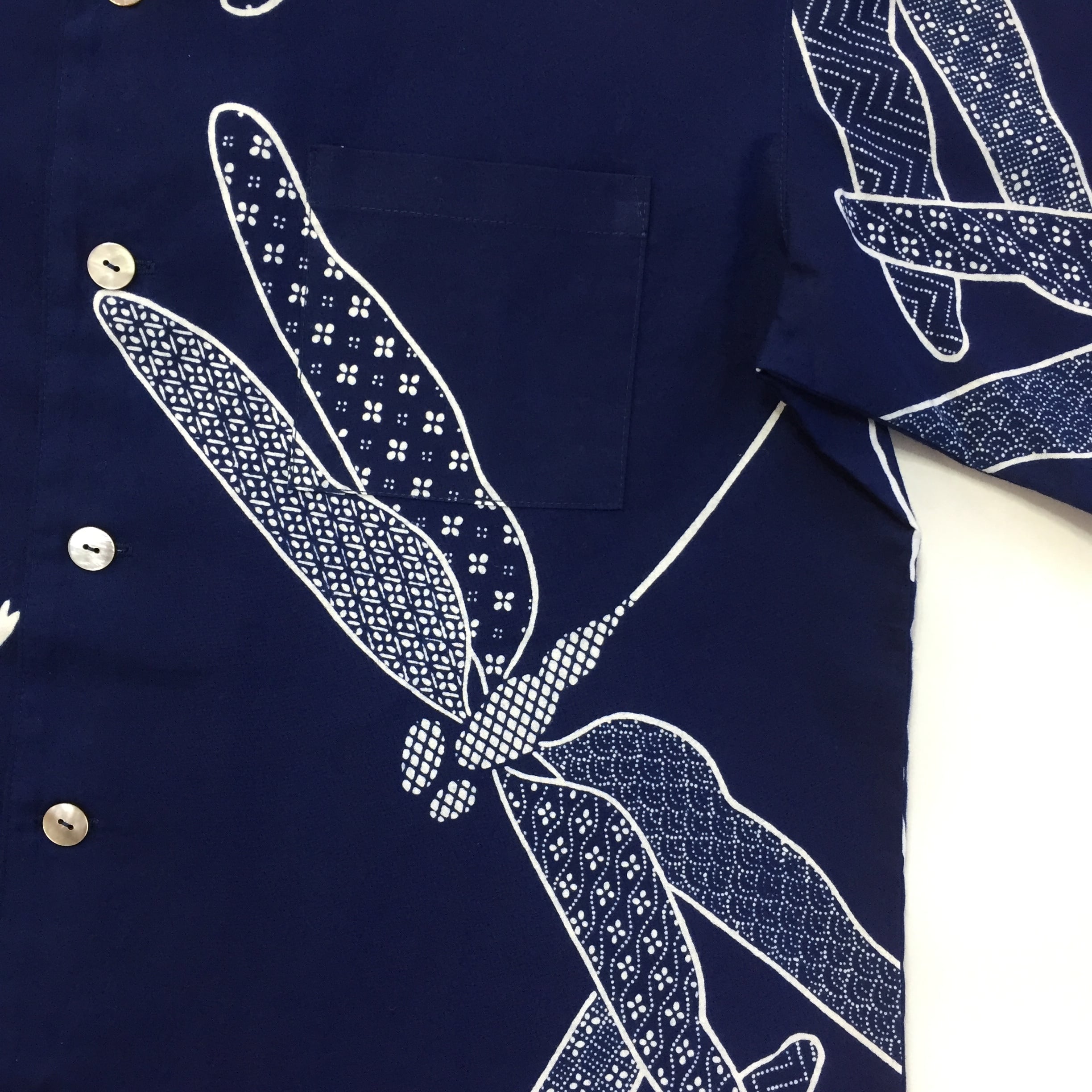 ※職業用ミシンで一枚一枚丁寧に縫っているハンドメイド品です。浴衣の反物の場合は一反から二着のアロハを作れますので、一点モノならぬ二点モノですが、同じサイズのアロハを2着作ることはありません。